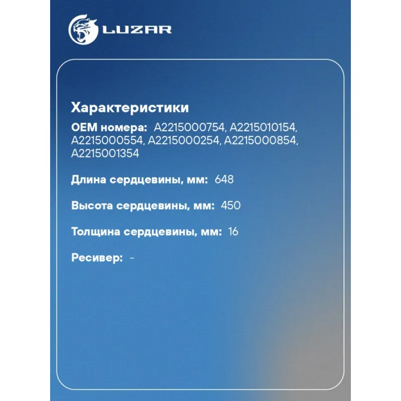 Радиатор кондиционера для автомобилей Mercedes-Benz S (W221) (05-) LRAC 1555 LUZAR