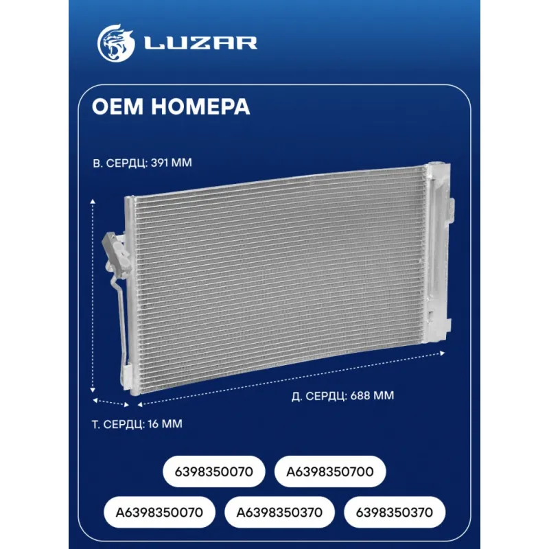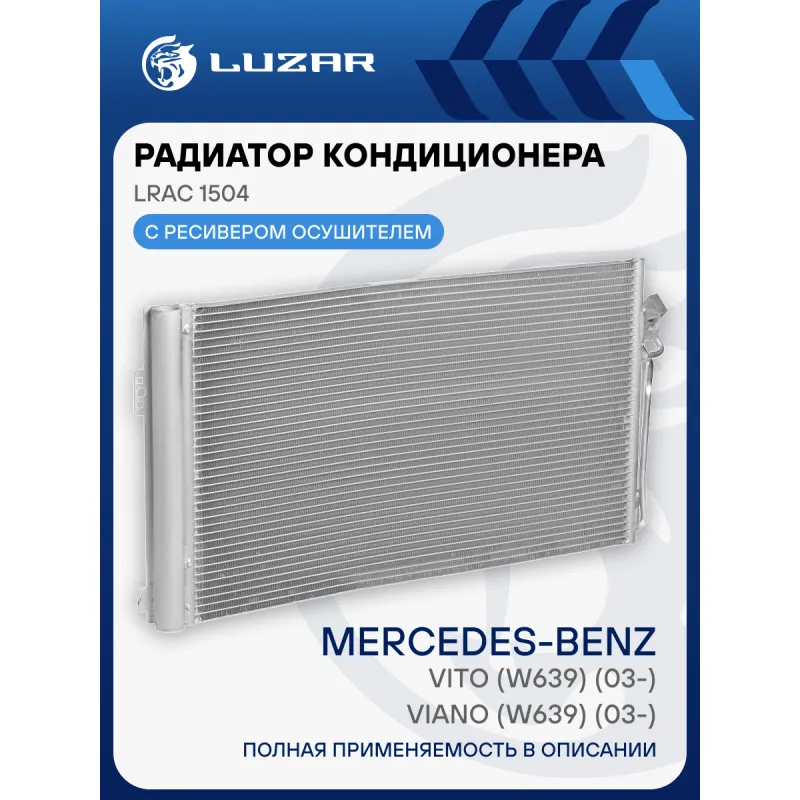 Радиатор кондиционера для автомобилей Mercedes-Benz Vito/Viano (03-) Характеристики: Артикул: LRAC 1504 OEM номера: A6398350070, A6398350370 , 6398350370, 6398350070, A6398350700 Количество на автомобиль: 1 Длина сердцевины, мм: 688 Высота сердцевины, мм: 391 Толщина сердцевины, мм: 16 Сопутствующий товар: Ресиверы-осушители: LC... Читать полностью →