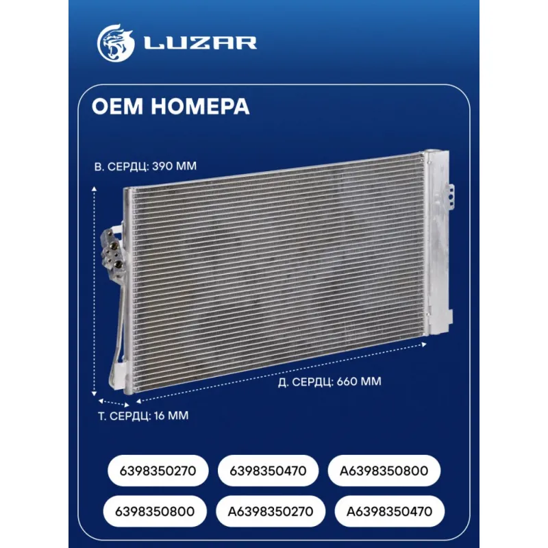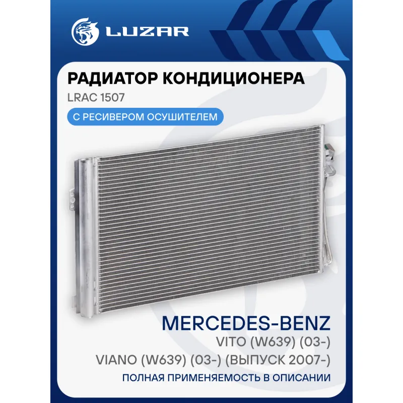 Радиатор кондиционера для автомобилей Mercedes-Benz Vito/Viano (03-) (выпуск 2007-) (LRAC 1507) Характеристики: Артикул: LRAC 1507 OEM номера: 6398350800, A6398350270, A6398350470, 6398350270, 6398350470, A6398350800 Количество на автомобиль: 1 Длина сердцевины, мм: 660 Высота сердцевины, мм: 390 Толщина сердцевины, мм: 16 Сопутствующий товар: Ресиверы-осушители: LCD 1503 Сопутствующий товар: Радиаторы охлаждения: LRc 1504; LRc 15104 Сопутствующий товар: Компрессоры кондиционера: LCAC 15164 Ресивер: + Подходит для авто: Mercedes-Benz Vito (W639) (03-), Viano (W639) (03-) Для проверки применяемости отправьте VIN автомобиля через вкладку "Есть вопросы о товаре?" Комплектация: Паспорт изделия - 1 шт Радиатор кондиционера c ресивером - 1 шт Гарантия: от 1 года.