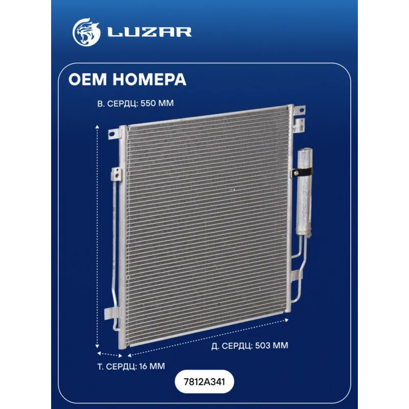 Радиатор кондиционера для автомобилей Mitsubishi L200 (15-)/Pajero Sport (15-) 2.4D/3.0D Характеристики: Артикул: LRAC 11153 OEM номера: 7812A341 Количество на автомобиль: 1 Длина сердцевины, мм: 503 Высота сердцевины, мм: 550 Толщина сердцевины, мм: 16 Сопутствующий товар: Радиаторы охлаждения: LRc 11150; LRc 1150 Сопутствующий товар: Компрессоры кондиционера: LCAC 1149 Ресивер: + Подходит для авто: Mitsubishi Pajero Sport (15-), L200 (15-) Для проверки применяемости отправьте VIN автомобиля через вкладку "Есть вопросы о товаре?" Комплектация: Паспорт изделия - 1 шт Радиатор кондиционера в сборе с ресивером - 1 шт Гарантия: от 1 года.