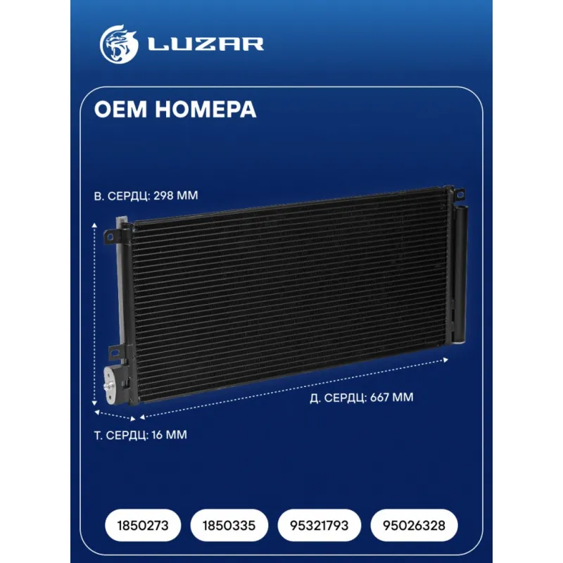 Радиатор кондиционера для автомобилей Mokka (13-) 1.4T Характеристики: Артикул: LRAC 2151 OEM номера: 1850273, 1850335, 95321793, 95026328 Количество на автомобиль: 1 Длина сердцевины, мм: 667 Высота сердцевины, мм: 298 Толщина сердцевины, мм: 16 Сопутствующий товар: Радиаторы охлаждения: LRc 21151; LRc 2151 Сопутствующий товар: Клапаны расширительные кондиционера (ТРВ): LTRV 0595 Ресивер: + Подходит для авто: Opel Mokka (13-) Для проверки применяемости отправьте VIN автомобиля через вкладку "Есть вопросы о товаре?" Комплектация: Паспорт изделия - 1 шт Радиатор кондиционера c ресивером - 1 шт Гарантия: от 1 года.