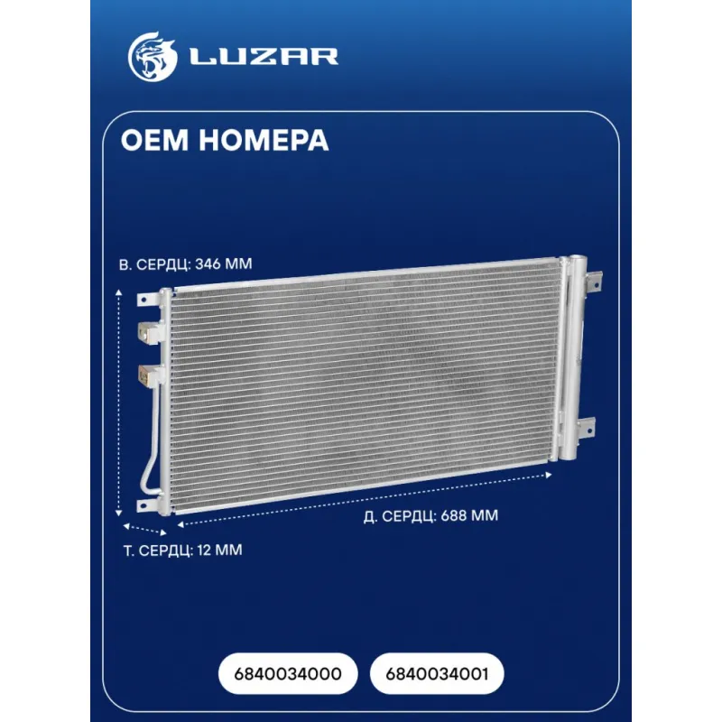 Радиатор кондиционера для автомобилей New Actyon/Korando (12-) Характеристики: Артикул: LRAC 1755 OEM номера: 6840034000, 6840034001 Количество на автомобиль: 1 Длина сердцевины, мм: 688 Высота сердцевины, мм: 346 Толщина сердцевины, мм: 12 Сопутствующий товар: Ресиверы-осушители: LCD 0801 Сопутствующий товар: Радиаторы охлаждения: LRc 1755, LRc 17135 Сопутствующий товар: Электровентиляторы охлаждения: LFK 1755 Сопутствующий товар: Компрессоры кондиционера: LCAC 1755 Комплектующие конденсера: LCD 0801 Ресивер: + Подходит для авто: SsangYong Korando C (10-), Actyon II (10-) Для проверки применяемости отправьте VIN автомобиля через вкладку "Есть вопросы о товаре?" Комплектация: Паспорт изделия - 1 шт Радиатор кондиционера c ресивером - 1 шт Гарантия: от 1 года.