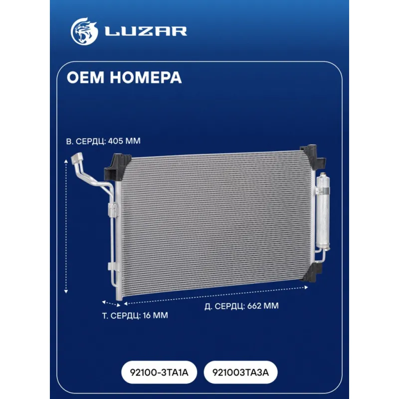 Радиатор кондиционера для автомобилей Nissan Teana J33 (13-) Характеристики: Артикул: LRAC 1413 OEM номера: 92100-3TA1A, 921003TA3A Количество на автомобиль: 1 Длина сердцевины, мм: 662 Высота сердцевины, мм: 405 Толщина сердцевины, мм: 16 Сопутствующий товар: Радиаторы охлаждения: LRc 141N9 Сопутствующий товар: Компрессоры конд... Читать полностью →