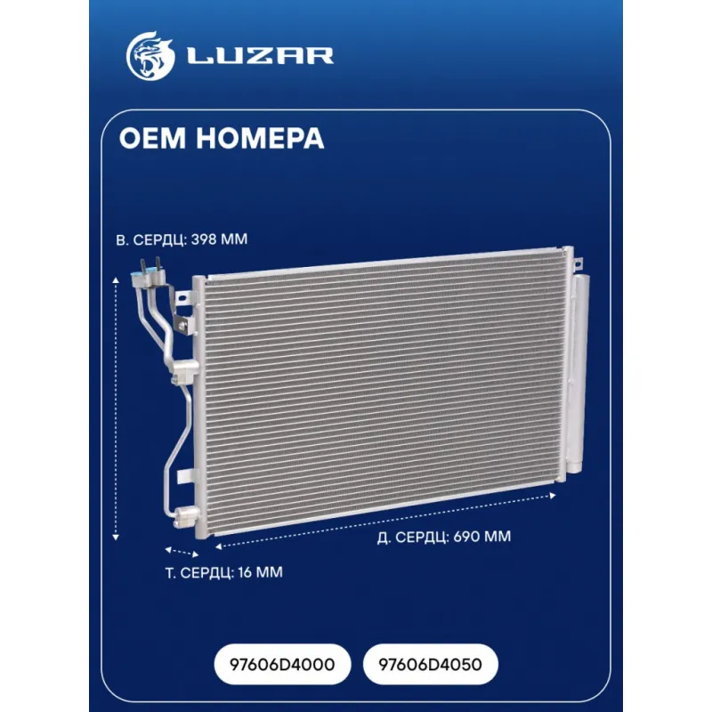 Радиатор кондиционера для автомобилей Optima (15-) 2.0i/2.4i AT Характеристики: Артикул: LRAc 08120 OEM номера: 97606D4000, 97606D4050 Сопутствующий товар: Электровентиляторы охлаждения: LFK 0812 Сопутствующий товар: Компрессоры кондиционера: LCAC 0812, LCAC 0844; Сопутствующий товар: Клапаны расширительные кондиционера (ТРВ): LTRV 0812 Сопутствующий товар: Датчики давления хладагента: LRPS 0804 Комплектующие конденсера: LCD 0801 Количество на автомобиль: 1 Длина сердцевины, мм: 690 Высота сердцевины, мм: 398 Толщина сердцевины, мм: 16 Сопутствующий товар: Ресиверы-осушители: LCD 0801 Сопутствующий товар: Радиаторы охлаждения: LRc 081S6 Подходит для авто: Kia Optima (15-) Для проверки применяемости отправьте VIN автомобиля через вкладку "Есть вопросы о товаре?" Комплектация: Паспорт изделия - 1 шт Радиатор кондиционера c ресивером - 1 шт Гарантия: от 1 года.