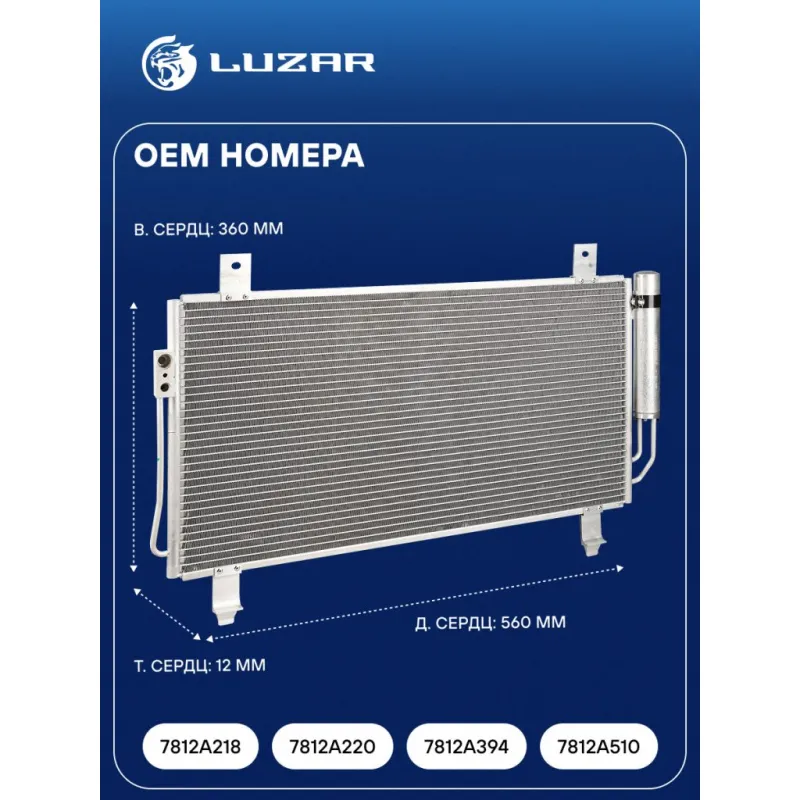 Радиатор кондиционера для автомобилей Outlander (12-) Характеристики: Артикул: LRAC 1162 OEM номера: 7812A218, 7812A220, 7812A394, 7812A510 Количество на автомобиль: 1 Длина сердцевины, мм: 560 Высота сердцевины, мм: 360 Толщина сердцевины, мм: 12 Сопутствующий товар: Ресиверы-осушители: LCR 1162 Сопутствующий товар: Радиаторы охлаждения: LRc 1162 Сопутствующий товар: Электровентиляторы охлаждения: LFK 1162 Сопутствующий товар: Компрессоры кондиционера: LCAC 1162 Сопутствующий товар: Клапаны расширительные кондиционера (ТРВ): LTRV 1162 Комплектующие конденсера: LCR 1162 Ресивер: + Сопутсвующий товар: Датчики давления хладагента: LRPS 1104 Подходит для авто: Mitsubishi Outlander III (12-) Для проверки применяемости отправьте VIN автомобиля через вкладку "Есть вопросы о товаре?" Комплектация: Радиатор кондиционера в сборе с ресивером Паспорт изделия Гарантия: от 1 года.
