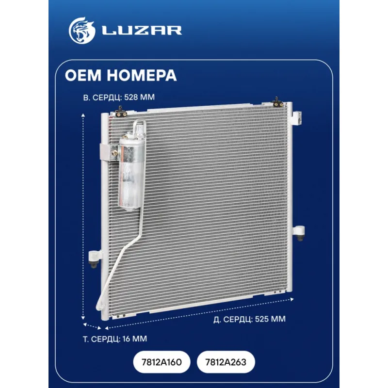 Радиатор кондиционера для автомобилей Pajero Sport (08-) M/A Характеристики: Артикул: LRAC 1149 OEM номера: 7812A160, 7812A263 Количество на автомобиль: 1 Длина сердцевины, мм: 525 Высота сердцевины, мм: 528 Толщина сердцевины, мм: 16 Сопутствующий товар: Радиаторы охлаждения: LRc 11152 Сопутствующий товар: Электровентиляторы ко... Читать полностью →