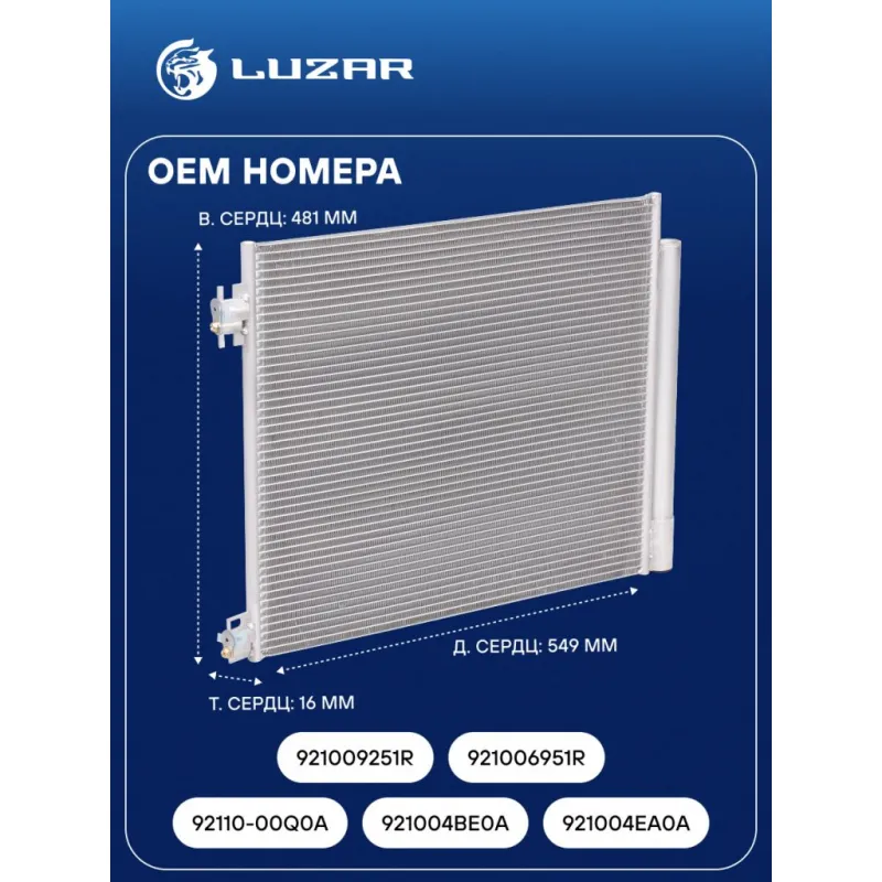 Радиатор кондиционера для автомобилей Qashqai (14-)/X-Trail (14-) Характеристики: Артикул: LRAC 14EA OEM номера: 92110-00Q0A, 921004BE0A, 921004EA0A, 921009251R, 921006951R Количество на автомобиль: 1 Длина сердцевины, мм: 549 Высота сердцевины, мм: 481 Толщина сердцевины, мм: 16 Сопутствующий товар: Радиаторы охлаждения: LRc 14EA Сопутствующий товар: Электровентиляторы охлаждения: LFK 14EA Сопутствующий товар: Компрессоры кондиционера: LCAC 0909; LCAC 1420 Ресивер: + Сопутсвующий товар: Датчики давления хладагента: LRPS 1401 Подходит для авто: Nissan Qashqai II J11 (13-), X-Trail T32 (14-) Для проверки применяемости отправьте VIN автомобиля через вкладку "Есть вопросы о товаре?" Комплектация: Паспорт изделия - 1 шт Радиатор кондиционера c ресивером - 1 шт Гарантия: от 1 года.