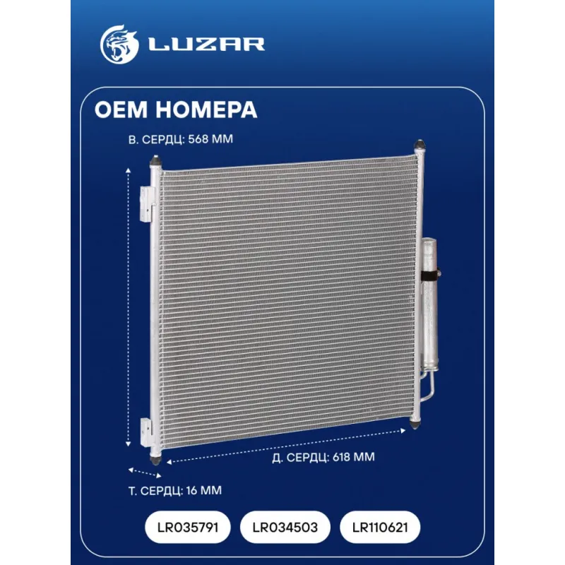 Радиатор кондиционера для автомобилей Range Rover (12-)/Range Rover Sport (13-) Характеристики: Артикул: LRAC 1017 OEM номера: LR035791, LR034503, LR110621, LR181385, LR133116, LR137975 Количество на автомобиль: 1 Длина сердцевины, мм: 618 Высота сердцевины, мм: 568 Толщина сердцевины, мм: 16 Сопутствующий товар: Радиаторы охлаждения: LRc 10170 осушитель: + Подходит для авто: Land Rover Range Rover IV (12-), Range Rover Sport II (13-) Для проверки применяемости отправьте VIN автомобиля через вкладку "Есть вопросы о товаре?" Комплектация: Радиатор кондиционера с ресивером в сборе - 1 шт Паспорт изделия - 1 шт Гарантия: от 1 года.