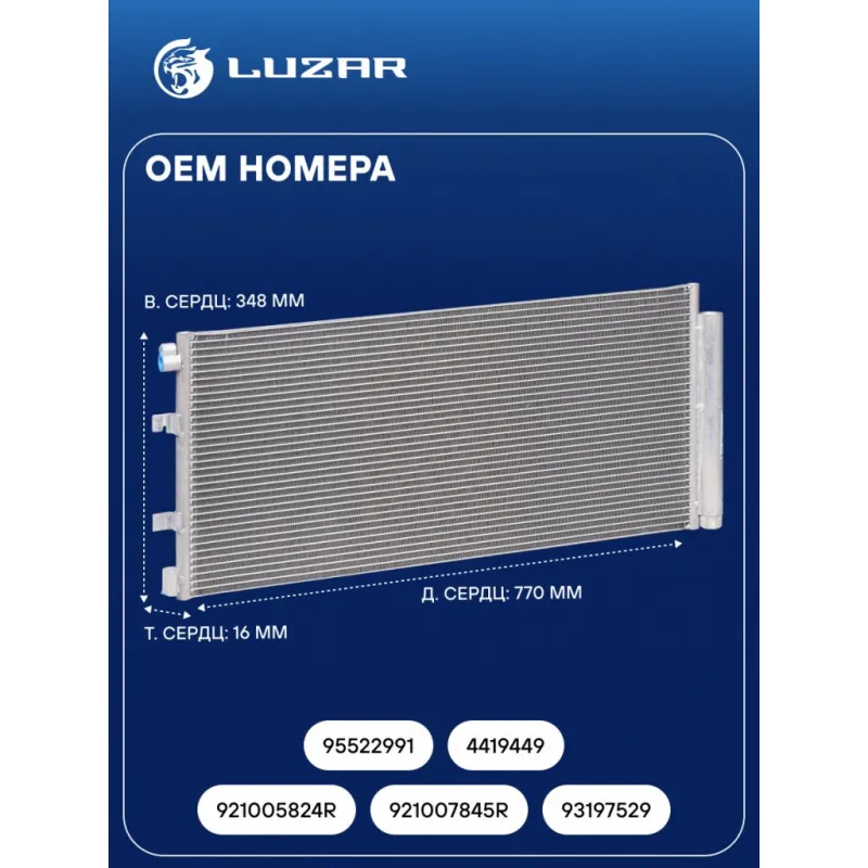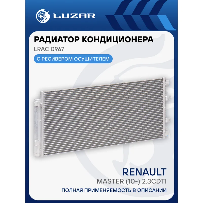 Радиатор кондиционера для автомобилей Renault Master (10-) 2.3CDTi Характеристики: Артикул: LRAC 0967 OEM номера: 921005824R, 921007845R, 93197529, 95522991, 4419449 Количество на автомобиль: 1 Длина сердцевины, мм: 770 Высота сердцевины, мм: 348 Толщина сердцевины, мм: 16 Сопутствующий товар: Радиаторы охлаждения: LRc 0967 осушитель: + Подходит для авто: Renault Master III (10-) Opel Movano B (10-) Для проверки применяемости отправьте VIN автомобиля через вкладку "Есть вопросы о товаре?" Комплектация: Радиатор кондиционера с ресивером Паспорт изделия Гарантия: от 1 года.