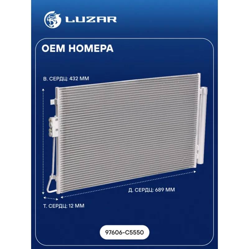 Радиатор кондиционера для автомобилей Sorento III (14-) 2.4i Характеристики: Артикул: LRAC 0824 OEM номера: 97606-C5550 Количество на автомобиль: 1 Длина сердцевины, мм: 689 Высота сердцевины, мм: 432 Толщина сердцевины, мм: 12 Сопутствующий товар: Ресиверы-осушители: LCD 0801 Сопутствующий товар: Электровентиляторы охлаждения: LFK 0850; LFK 08C5 Сопутствующий товар: Компрессоры кондиционера: LCAC 0826 Комплектующие конденсера: LCD 0801 Подходит для авто: Kia Sorento III (14-) Для проверки применяемости отправьте VIN автомобиля через вкладку "Есть вопросы о товаре?" Комплектация: Паспорт изделия - 1 шт Радиатор кондиционера c ресивером - 1 шт Гарантия: от 1 года.