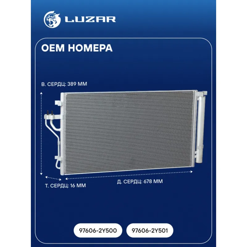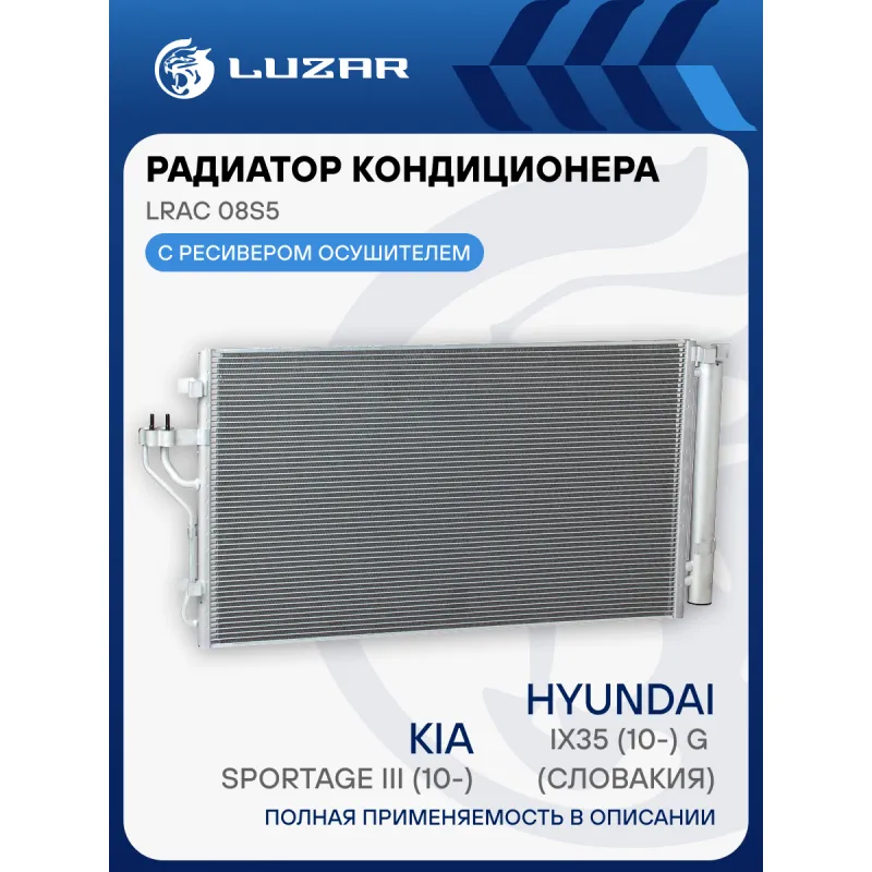 Радиатор кондиционера для автомобилей Sportage III/iX35 (10-) G (Словакия) Характеристики: Артикул: LRAC 08S5 OEM номера: 97606-2Y500, 97606-2Y501 Количество на автомобиль: 1 Длина сердцевины, мм: 678 Высота сердцевины, мм: 389 Толщина сердцевины, мм: 16 Сопутствующий товар: Ресиверы-осушители: LCD 0801 Сопутствующий товар: Радиаторы охлаждения: LRc 081S5; LRc 08S5; Сопутствующий товар: Электровентиляторы охлаждения: LFK 08S5; Сопутствующий товар: Компрессоры кондиционера: LCAC 08S5 Сопутствующий товар: Клапаны расширительные кондиционера (ТРВ): LTRV 0805 Ресивер: + Подходит для авто: Kia Sportage III (10-) Hyundai iX35 (10-) Для проверки применяемости отправьте VIN автомобиля через вкладку "Есть вопросы о товаре?" Комплектация: Паспорт изделия - 1 шт Радиатор кондиционера c ресивером - 1 шт Гарантия: от 1 года.