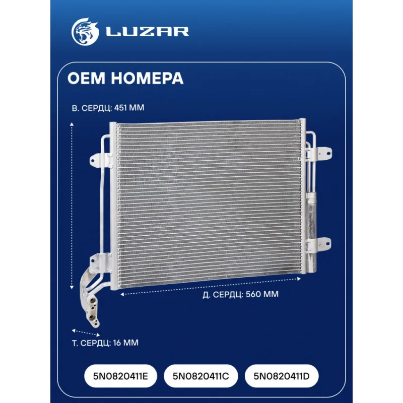 Радиатор кондиционера для автомобилей Tiguan (08-) Характеристики: Артикул: LRAC 18N5 OEM номера: 5N0820411E, 5N0820411C, 5N0820411D Количество на автомобиль: 1 Длина сердцевины, мм: 560 Высота сердцевины, мм: 451 Толщина сердцевины, мм: 16 Сопутствующий товар: Радиаторы охлаждения: LRc 1813; LRc 18L3; LRc 18N5 Сопутствующий товар: Клапаны расширительные кондиционера (ТРВ): LTRV 1879 Ресивер: + Подходит для авто: Volkswagen Tiguan (08-) Для проверки применяемости отправьте VIN автомобиля через вкладку "Есть вопросы о товаре?" Комплектация: Паспорт изделия - 1 шт Радиатор кондиционера c ресивером - 1 шт Гарантия: от 1 года.