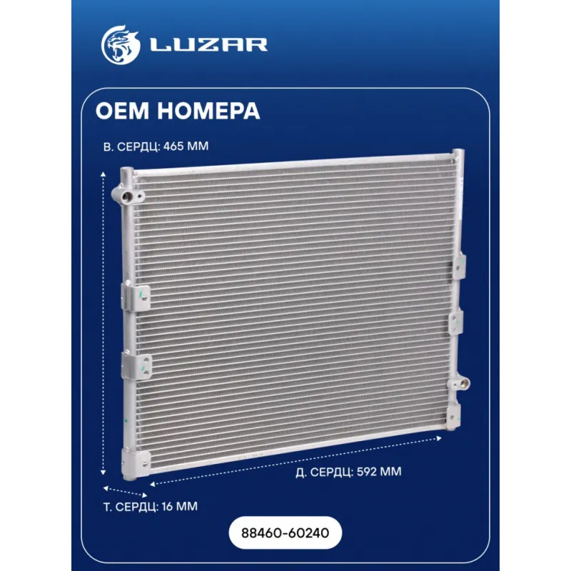 Радиатор кондиционера для автомобилей Toyota 4RUNNER (95-)/LC Prado 90 (96-) Характеристики: Артикул: LRAC 1981 OEM номера: 88460-60240 Количество на автомобиль: 1 Длина сердцевины, мм: 592 Высота сердцевины, мм: 465 Толщина сердцевины, мм: 16 Сопутствующий товар: Радиаторы охлаждения: LRc 1948 Подходит для авто: Toyota Land Cruiser Prado 90 (96-), 4Runner (N180) (95-) Для проверки применяемости отправьте VIN автомобиля через вкладку "Есть вопросы о товаре?" Комплектация: Радиатор кондиционера Паспорт изделия - 1 шт Радиатор кондиционера c ресивером - 1 шт Гарантия: от 1 года.