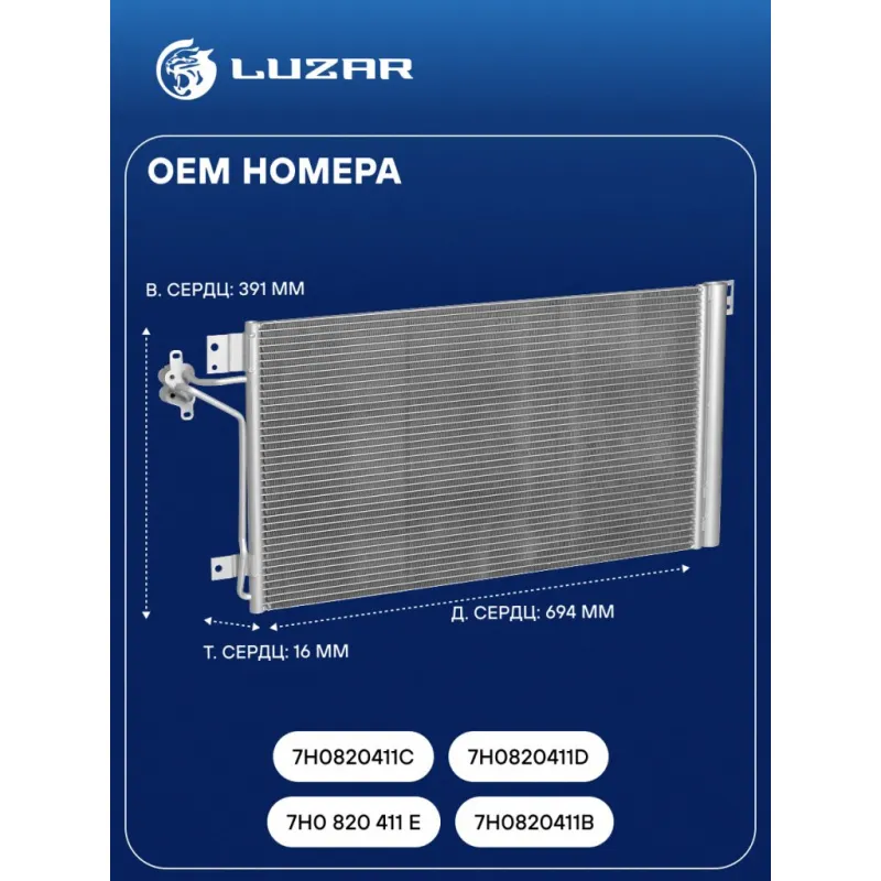 Радиатор кондиционера для автомобилей Transporter T5 (03-) Характеристики: Артикул: LRAC 18H7 OEM номера: 7H0 820 411 E, 7H0820411B, 7H0820411C, 7H0820411D Количество на автомобиль: 1 Длина сердцевины, мм: 694 Высота сердцевины, мм: 391 Толщина сердцевины, мм: 16 Сопутствующий товар: Ресиверы-осушители: LCD 1806; LCD 1808 Сопутствующий товар: Радиаторы охлаждения: LRc 18H7; LRc 18H8; LRc 18HG Сопутствующий товар: Электровентиляторы кондиционера: LFAC 1848 Сопутствующий товар: Электровентиляторы охлаждения: LFK 1848 Сопутствующий товар: Компрессоры кондиционера: LCAC 1810; LCAC 1825 Сопутствующий товар: Клапаны расширительные кондиционера (ТРВ): LTRV 1825 Ресивер: + Подходит для авто: Volkswagen Transporter T5 (03-), Transporter T5 (03-) Для проверки применяемости отправьте VIN автомобиля через вкладку "Есть вопросы о товаре?" Комплектация: Паспорт изделия - 1 шт Радиатор кондиционера c ресивером - 1 шт Гарантия: от 1 года.
