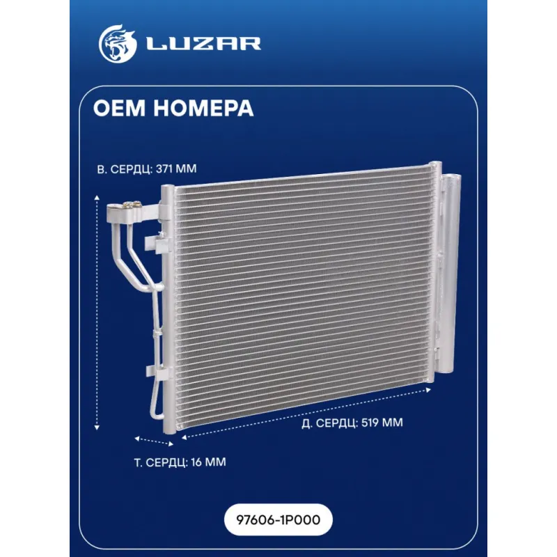 Радиатор кондиционера для автомобилей Venga (10-) 1.4i/1.6i Характеристики: Артикул: LRAC 0818 OEM номера: 97606-1P000 Количество на автомобиль: 1 Длина сердцевины, мм: 519 Высота сердцевины, мм: 371 Толщина сердцевины, мм: 16 Сопутствующий товар: Радиаторы охлаждения: LRc 081P0 Ресивер: + Подходит для авто: Kia Venga (10-) Для проверки применяемости отправьте VIN автомобиля через вкладку "Есть вопросы о товаре?" Комплектация: Паспорт изделия - 1 шт Кольцо уплотнительное - 2 шт Радиатор кондиционера c ресивером - 1 шт Гарантия: от 1 года.