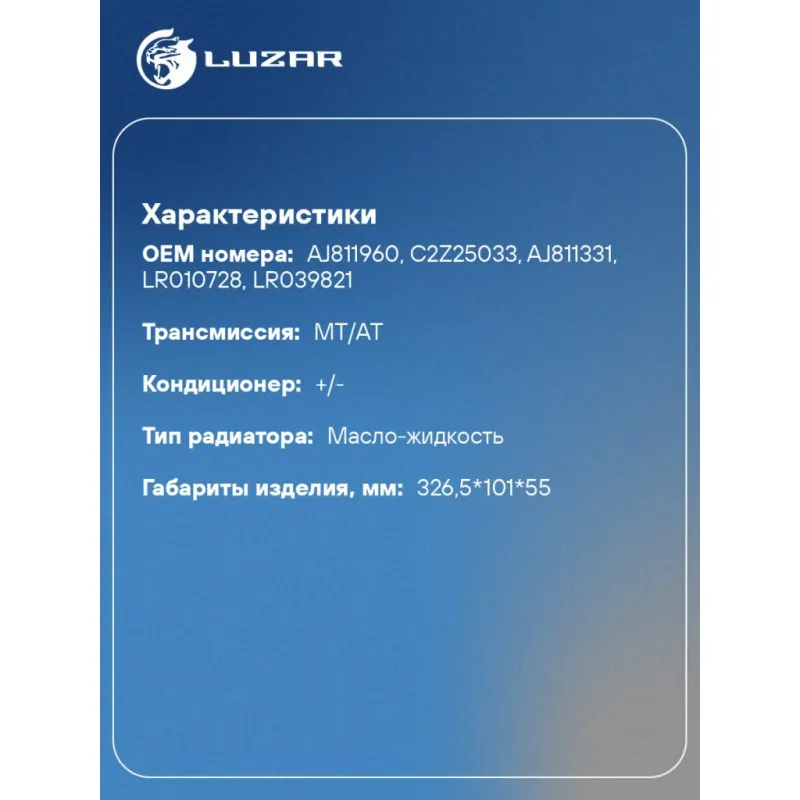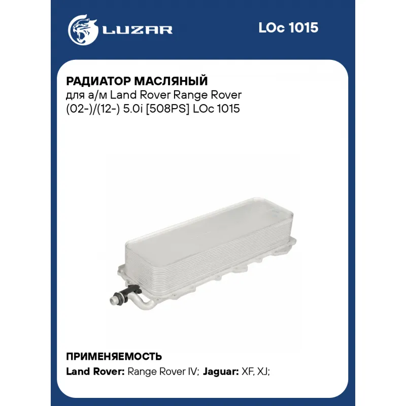 Радиатор масляный для а/м Land Rover Range Rover (02-)/(12-) 5.0i [508PS] Характеристики: Артикул: LOc 1015 OEM номера: AJ811960, C2Z25033, AJ811331, LR010728, LR039821 Материал: алюминий Трансмиссия: MT/AT Кондиционер: +/- Тип радиатора: масло-жидкость Габариты изделия, мм: 326,5*101*55 Сопутствующий товар: Радиаторы охлаждения: LRc 10170 Подходит для авто: Land Rover Range Rover IV (12-), Range Rover III (02-), Range Rover Sport I (05-), Range Rover Sport II (13-) Jaguar XF (07-), XJ (09-) Для проверки применяемости отправьте VIN автомобиля через вкладку "Есть вопросы о товаре?" Комплектация: Радиатор масляный - 1 шт Паспорт изделия - 1 шт Гарантия: от 1 года.