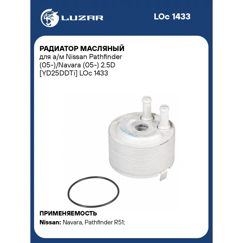 Радиатор масляный для а/м Nissan Pathfinder (05-)/Navara (05-) 2.5D [YD25DDTi] Характеристики: Артикул: LOc 1433 OEM номера: 21305-EB300, 21305-EB305 Материал: алюминий Трансмиссия: MT/AT Кондиционер: +/- Габариты изделия, мм: 97,3*97,3*50,5 Сопутствующий товар: Радиаторы охлаждения: LRc 141EB; LRc 14EB Сопутствующий товар: Радиаторы интеркулера (онв): LRIC 14EB Тип радиатора: масло-жидкость Назначение: маслоохладитель двигателя Подходит для авто: Nissan Navara (05-), Pathfinder R51 (05-) Для проверки применяемости отправьте VIN автомобиля через вкладку "Есть вопросы о товаре?" Комплектация: Радиатор масляный - 1 шт Паспорт изделия - 1 шт Гарантия: от 1 года.