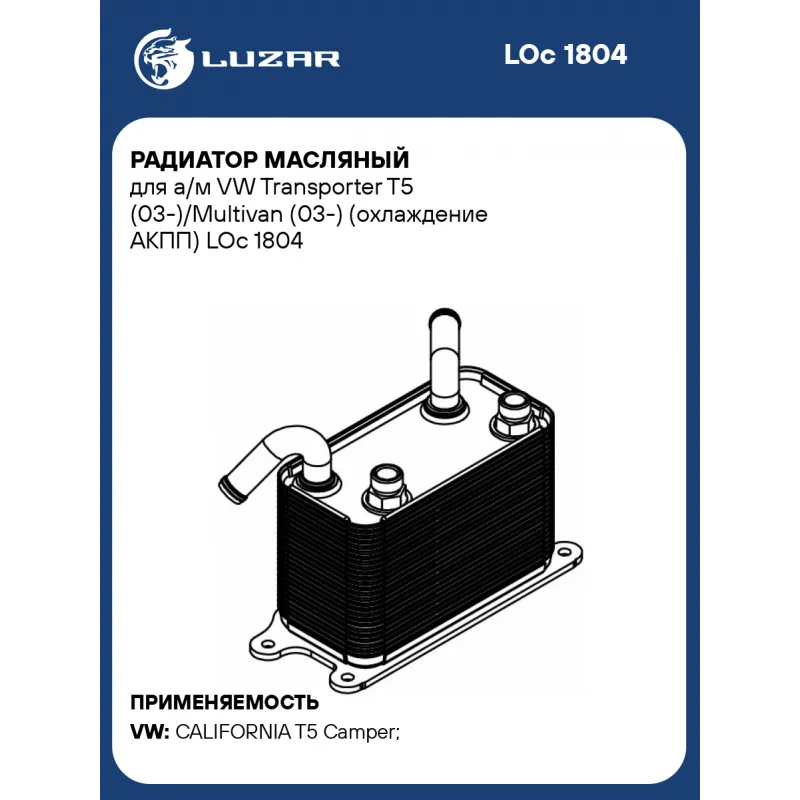 Радиатор масляный для а/м VW Transporter T5 (03-)/Multivan (03-) (охлаждение АКПП) Характеристики: Артикул: LOc 1804 OEM номера: 7H0317019B Материал: алюминий Трансмиссия: MT/AT Кондиционер: +/- Габариты изделия, мм: 160,95*79,85*105,8 Сопутствующий товар: Радиаторы охлаждения: LRc 18H7; LRc 18HG Сопутствующий товар: Радиаторы и... Читать полностью →