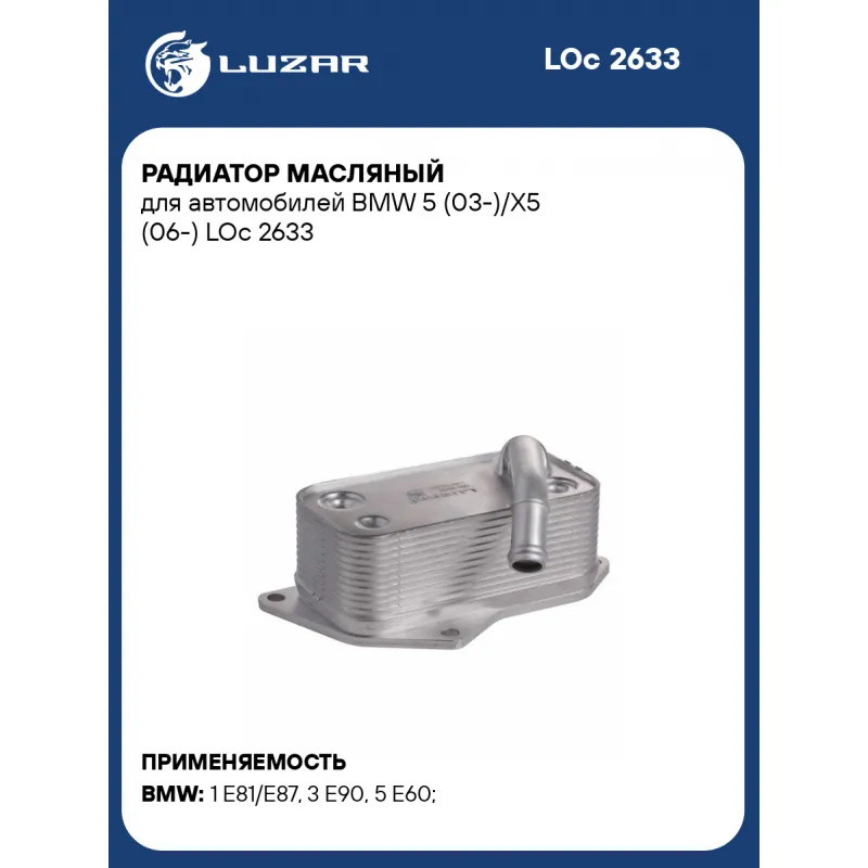 Радиатор масляный для автомобилей BMW 5 (03-)/X5 (06-) Характеристики: Артикул: LOc 2633 OEM номера: 11427525333, 5989070201 Материал: алюминий Тип радиатора: масло-жидкость Трансмиссия: MT/AT Габариты изделия, мм: 72.7*142*55 Кондиционер: +/- Сопутствующий товар: Радиаторы охлаждения: LRc 26103; LRc 26109; LRc 26111; LRc 26113; LRc 26118; LRc 26119; LRc 26125; LRc 26173; LRc 26181; LRc 26182; LRc 26193; LRc 26194 Применение: [N52B30; N20B20; N26B20; N52B25; N53B30; N55B30] Подходит для авто: BMW 1 E81/E87 (04-), 3 E90 (05-), 5 E60 (03-), 7 E65/E66 (01-), X5 E70 (07-), X6 E71 (08-) Для проверки применяемости отправьте VIN автомобиля через вкладку "Есть вопросы о товаре?" Комплектация: Радиатор масляный Прокладка Паспорт изделия Гарантия: от 1 года.