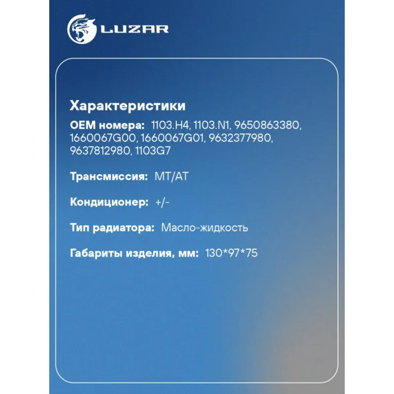 | Сопутствующий товар: Радиаторы интеркулера (онв) | LRIC 1650 |