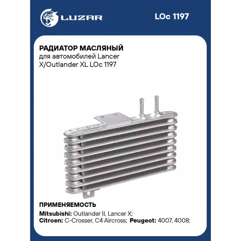 Радиатор масляный для автомобилей Lancer X/Outlander XL Характеристики: Артикул: LOc 1197 OEM номера: 2920A103 Материал: алюминий Тип радиатора: масло-воздух Трансмиссия: AT Габариты изделия, мм: 252*192*58 Кондиционер: +/- Размер сердцевины, мм: 252*126,8*32 Подходит для авто: Mitsubishi Outlander II (06-), Lancer X (07-), ASX (10-) Citroen C-Crosser (07-), C4 Aircross (12-) Peugeot 4007 (07-), 4008 (12-) Для проверки применяемости отправьте VIN автомобиля через вкладку "Есть вопросы о товаре?" Комплектация: Радиатор масляный Паспорт изделия Гарантия: от 1 года.