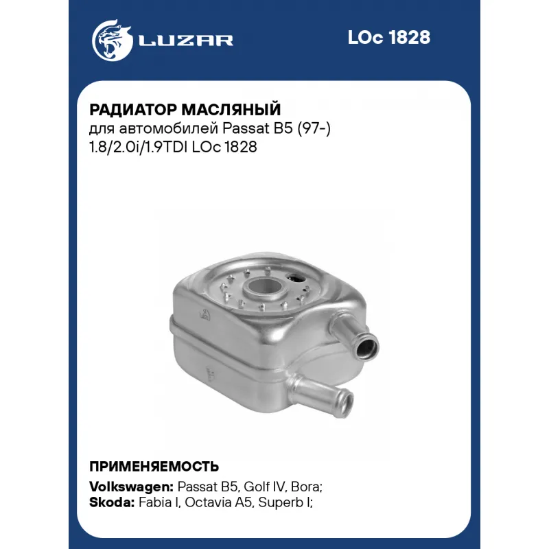 Радиатор масляный для автомобилей Passat B5 (97-) 1.8/2.0i/1.9TDI Характеристики: Артикул: LOc 1828 OEM номера: 028117021B, 028117 021L , 028117021K, MN980131, MN980417, MN980422, 1250893 Материал: алюминий Тип радиатора: масло-жидкость Трансмиссия: MT/AT Габариты изделия, мм: 92.5*92.5*61 Кондиционер: +/- Сопутствующий товар: Радиаторы охлаждения: LRc 1813; LRc 18J0; LRc 18L3 Сопутствующий товар: Радиаторы интеркулера (онв): LRIC 1803; LRIC 18N5 Подходит для авто: Volkswagen Passat B5 (96-), Golf IV (97-), Bora (99-) Skoda Fabia I (99-), Octavia A5 (04-), Superb I (01-), Fabia I (99-), Octavia (96-) Для проверки применяемости отправьте VIN автомобиля через вкладку "Есть вопросы о товаре?" Комплектация: Радиатора масляный Прокладка Паспорт изделия Гарантия: от 1 года.