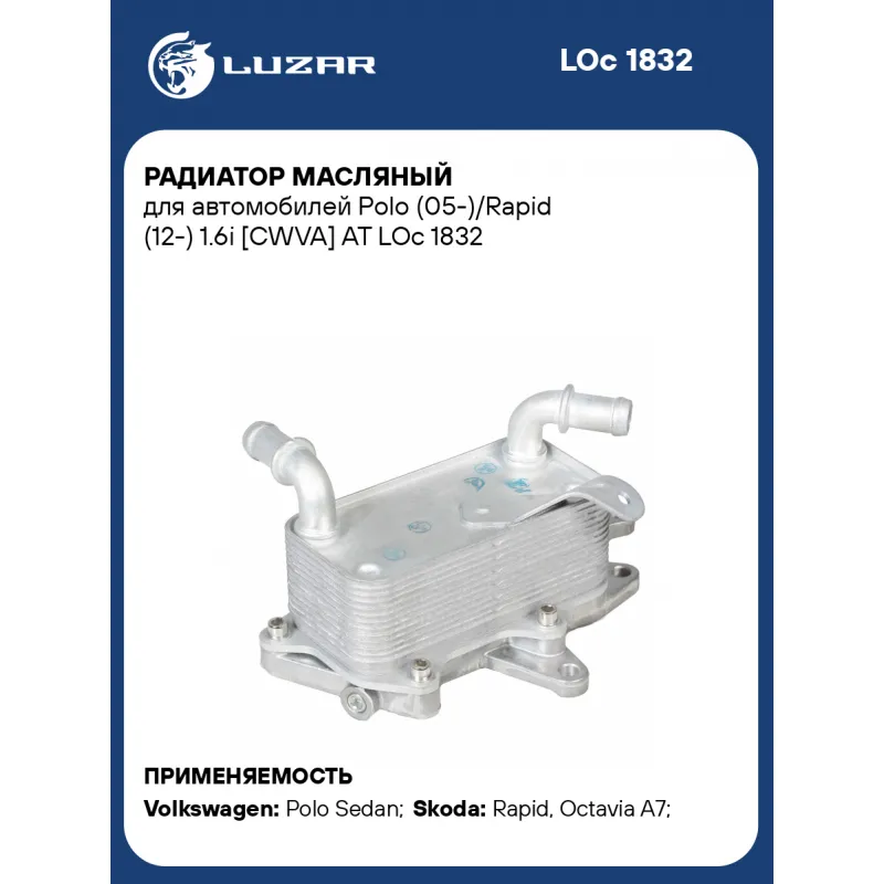 Радиатор масляный для автомобилей Polo (05-)/Rapid (12-) 1.6i [CWVA] AT Характеристики: Артикул: LOc 1832 OEM номера: 09G409061F, 09G409061D Материал: алюминий Тип радиатора: масло-жидкость Трансмиссия: AT Габариты изделия, мм: 216*149*102 Кондиционер: +/- Сопутствующий товар: Радиаторы охлаждения: LRc 1851 Комплектация:: уплотнительные прокладки в комплекте (2 шт.) Применение: АКПП: PLS, SGR, SGN Подходит для авто: Volkswagen Polo Sedan (RUS) (10-) Skoda Rapid (12-), Octavia A7 (13-) Для проверки применяемости отправьте VIN автомобиля через вкладку "Есть вопросы о товаре?" Комплектация: Радиатор масляный Прокладки уплотнительные - 2 шт Паспорт изделия Гарантия: от 1 года.