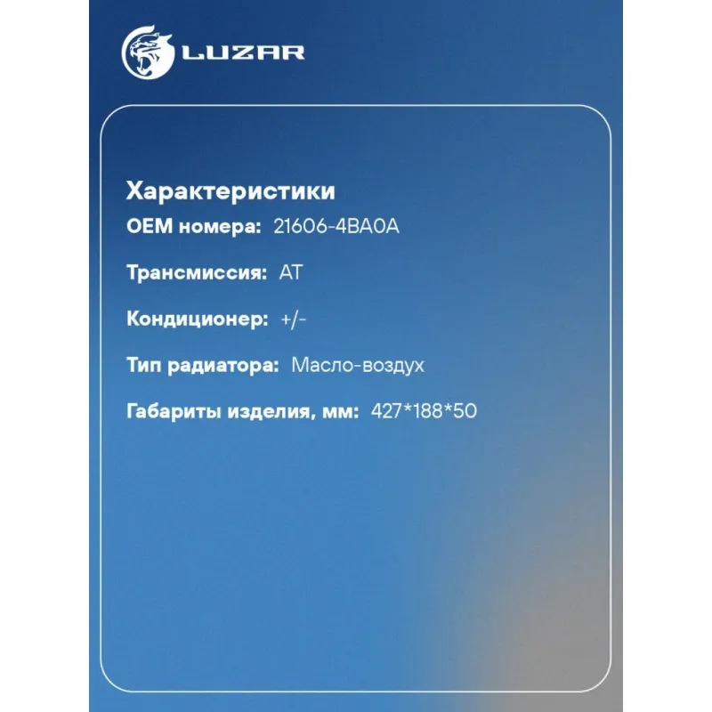Радиатор масляный для автомобилей X-Trail T32 (14-) 2.0i/2.5i AT Характеристики: Артикул: LOc 14CM OEM номера: 21606-4BA0A Материал: алюминий Тип радиатора: масло-воздух Трансмиссия: AT Габариты изделия, мм: 427*188*50 Кондиционер: +/- Размер сердцевины, мм: 355*143,8*50 Подходит для авто: Nissan X-Trail T32 (14-) Для проверки применяемости отправьте VIN автомобиля через вкладку "Есть вопросы о товаре?" Комплектация: Масляный радиатор Паспорт изделия Гарантия: от 1 года.