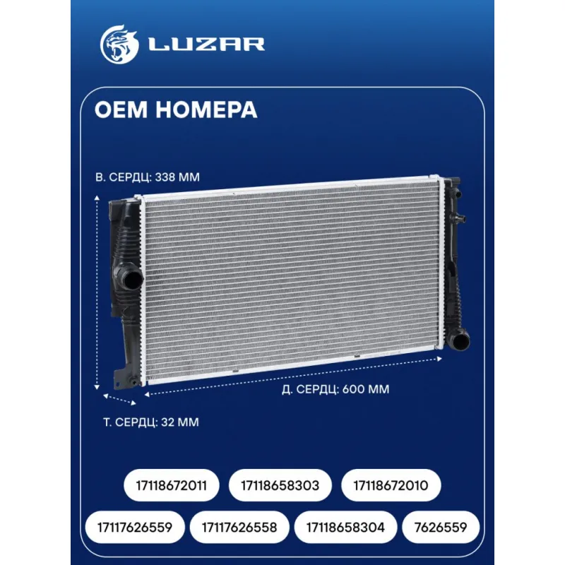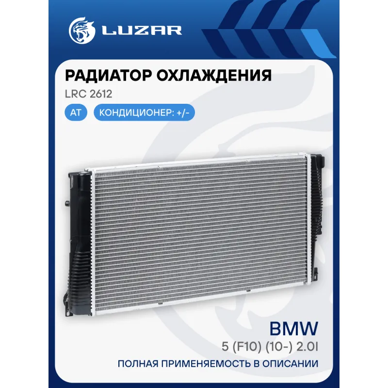 Радиатор охлаждения для а/м BMW 5 (F10) (10-) 2.0i [N20] AT Характеристики: Артикул: LRc 2612 OEM номера: 17117626559, 17117626558, 17118658304, 17118672011, 17118658303, 17118672010, 7626559 Трансмиссия: AT Кондиционер: +/- Материал сердцевины: алюминий Материал бачков: пластик Тип сердцевины: паяная Длина сердцевины, мм: 600 Толщина сердцевины, мм: 32 Высота сердцевины, мм: 338 Подходит для авто: BMW 5 F10/F11/F07 (10-) Для проверки применяемости отправьте VIN автомобиля через вкладку "Есть вопросы о товаре?" Комплектация: Радиатор охлаждения Паспорт изделия Гарантия: от 1 года.