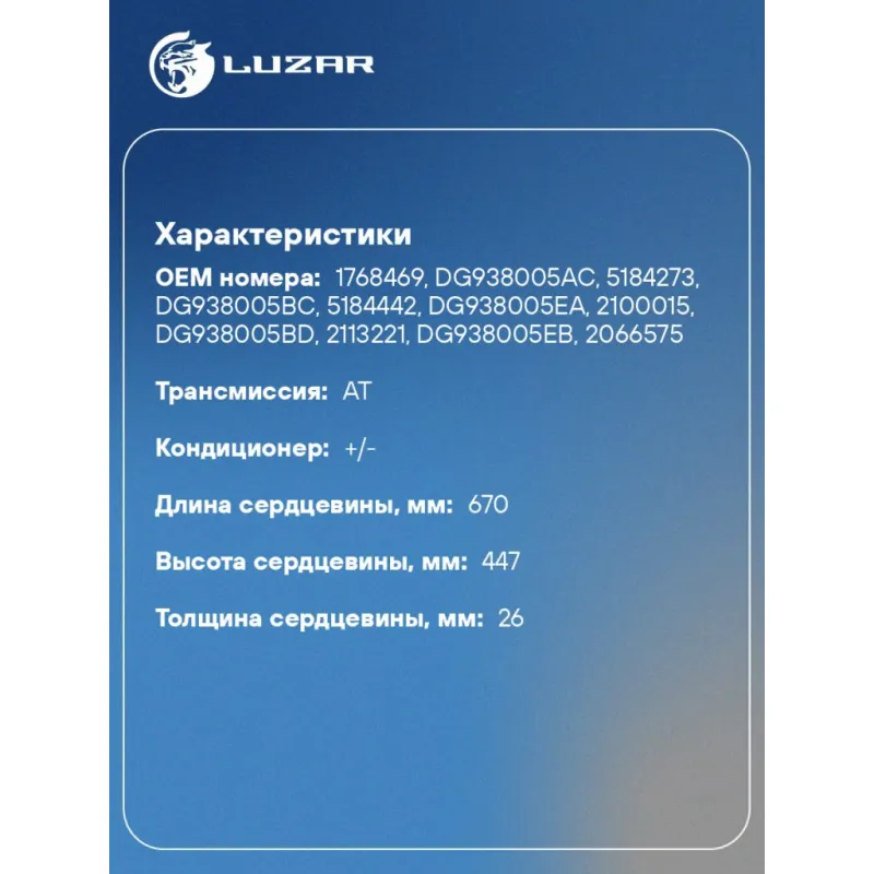 | Сопутствующий товар: Радиаторы кондиционера (конденсеры) | LRAC 1042 |