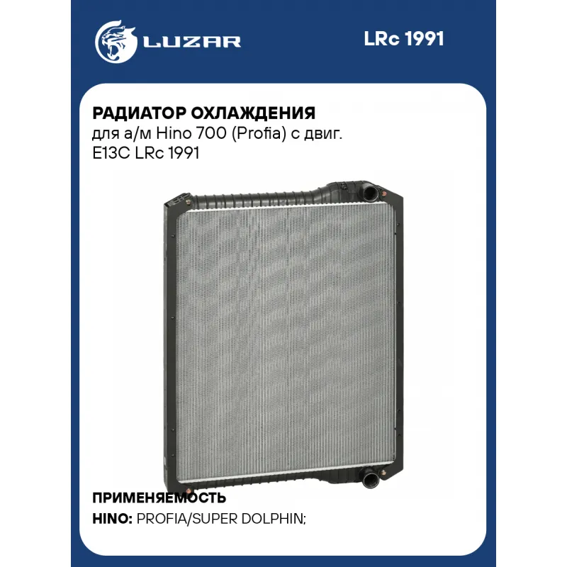 Радиатор охлаждения для а/м Hino 700 (Profia) с двиг. E13C Характеристики: Артикул: LRc 1991 OEM номера: 16081-6250A, 16041-E0050, 16081-6250 Трансмиссия: MT/AT Кондиционер: +/- Материал сердцевины: алюминий Материал бачков: пластик Тип сердцевины: паяная, 2-х рядная Длина сердцевины, мм: 758 Толщина сердцевины, мм: 56 Высота сердцевины, мм: 948 Комплектация: Радиатор охлаждения - 1 шт Паспорт изделия - 1 шт Гарантия: от 1 года.