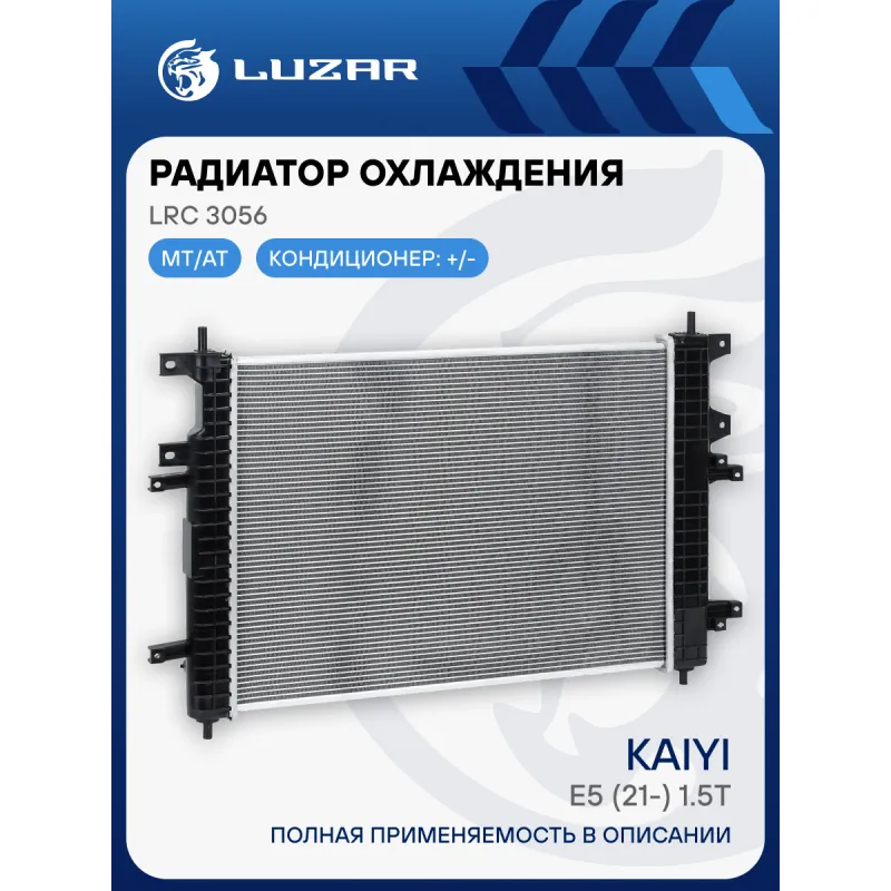 Радиатор охлаждения для а/м Kaiyi E5 (21-) 1.5T Характеристики: Артикул: LRc 3056 OEM номера: F01-1301100-01AA Трансмиссия: MT/AT Кондиционер: +/- Длина сердцевины, мм: 591 Высота сердцевины, мм: 432 Толщина сердцевины, мм: 16 Тип сердцевины: паяная Материал сердцевины: алюминий Материал бачков: пластик Подходит для авто: Kai... Читать полностью →