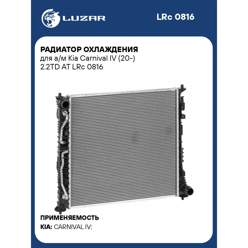Радиатор охлаждения для а/м Kia Carnival IV (20-) 2.2TD AT Характеристики: Артикул: LRc 0816 OEM номера: 25310R0000 Трансмиссия: AT Кондиционер: +/- Материал сердцевины: алюминий Материал бачков: пластик Тип сердцевины: паяная Сопутствующий товар: Радиаторы интеркулера (онв): LRIC 0829 Длина сердцевины, мм: 512 Толщина сердцевины, мм: 26 Высота сердцевины, мм: 515 Комплектация: Радиатор охлаждения - 1 шт Паспорт изделия - 1 шт Гарантия: от 1 года.