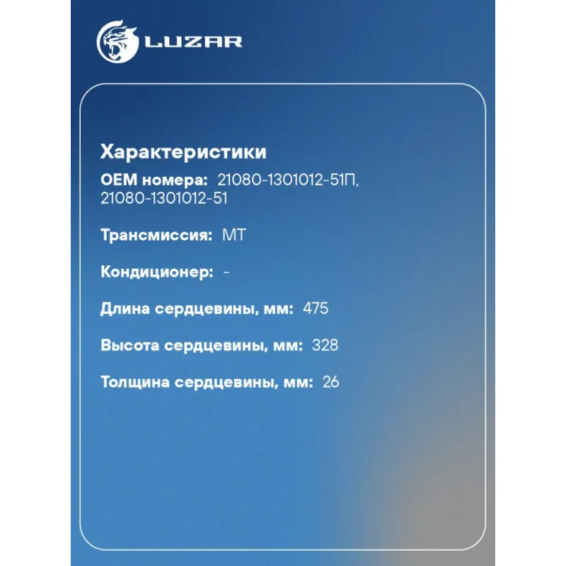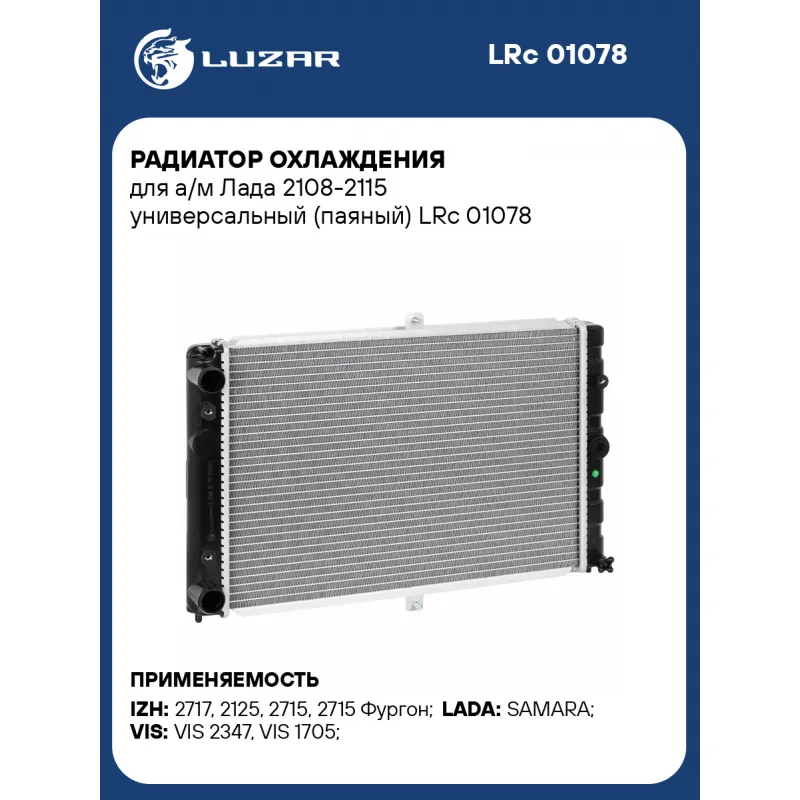 Радиатор охлаждения для а/м Лада 2108-2115 универсальный (паяный) LRc 01078 LUZAR