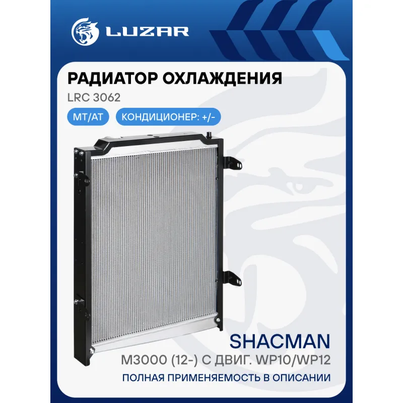 Радиатор охлаждения для а/м Shacman M3000 (12-) с двиг. WP10/WP12 (с рамкой) Характеристики: Артикул: LRc 3062 OEM номера: DZ96259532032 Трансмиссия: MT/AT Кондиционер: +/- Длина сердцевины, мм: 628 Высота сердцевины, мм: 800 Толщина сердцевины, мм: 48 Тип сердцевины: паяная, 2-х рядная Материал сердцевины: алюминий Материал бач... Читать полностью →