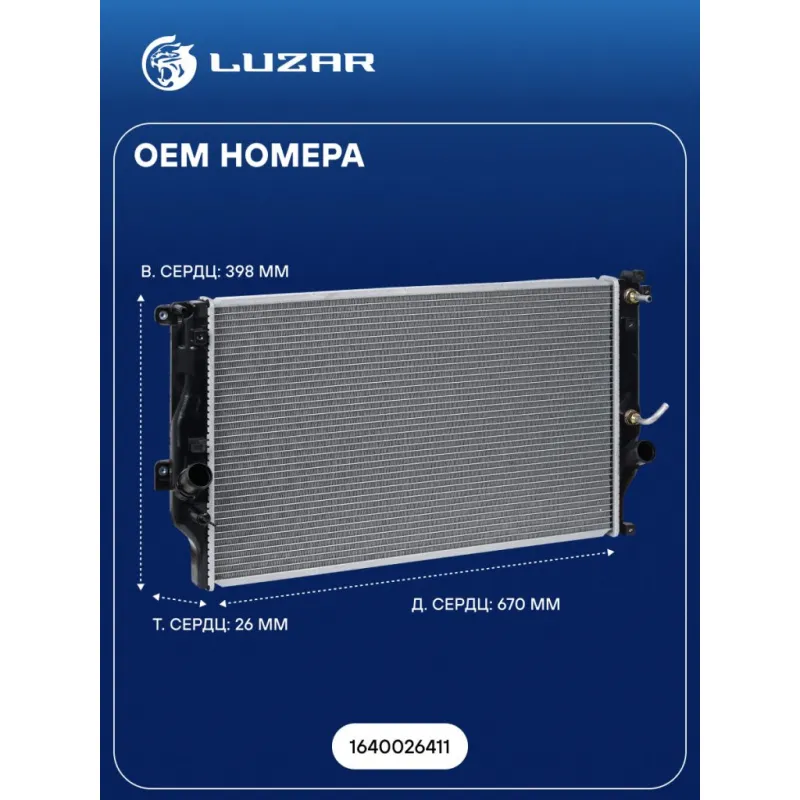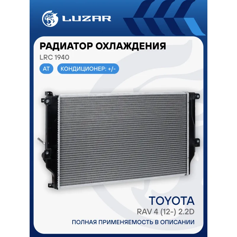 Радиатор охлаждения для а/м Toyota RAV4 (12-) 2.2D AT Характеристики: Артикул: LRc 1940 OEM номера: 1640026411 Трансмиссия: AT Кондиционер: +/- Материал сердцевины: алюминий Материал бачков: пластик Тип сердцевины: паяная Длина сердцевины, мм: 670 Толщина сердцевины, мм: 26 Высота сердцевины, мм: 398 Подходит для авто: Toyota... Читать полностью →