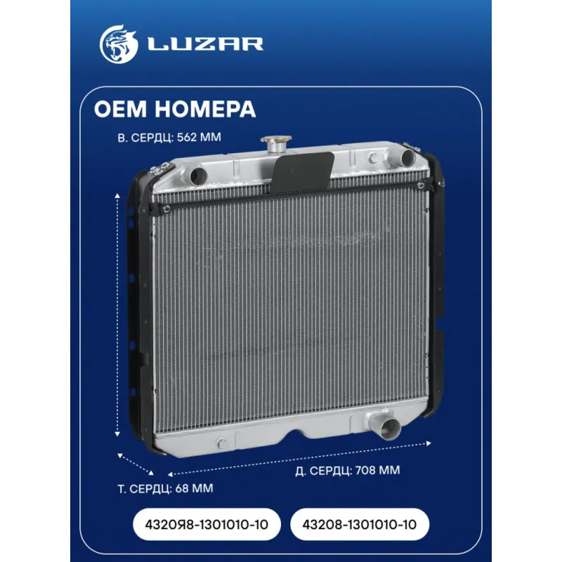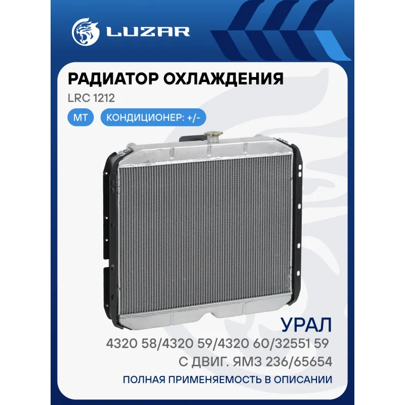 Радиатор охлаждения для а/м Урал 4320-58/4320-59/4320-60/32551-59 с двиг. ЯМЗ-236/65654 Характеристики: Артикул: LRc 1212 OEM номера: 4320Я8-1301010-10, 43208-1301010-10 Трансмиссия: MT Кондиционер: +/- Материал сердцевины: алюминий Материал бачков: алюминий Тип сердцевины: паяная, 3-х рядная Длина сердцевины, мм: 708 Толщина сердцевины, мм: 68 Высота сердцевины, мм: 562 Подходит для авто: Ural 4320 Для проверки применяемости отправьте VIN автомобиля через вкладку "Есть вопросы о товаре?" Комплектация: Радиатор охлаждения - 1 шт Паспорт изделия - 1 шт Гарантия: от 1 года.