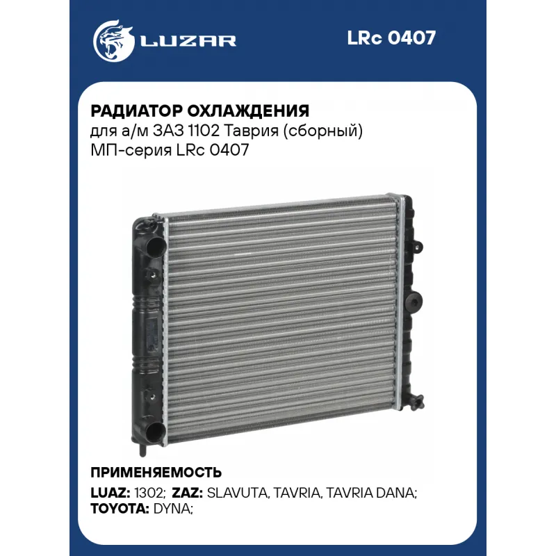 Радиатор охлаждения для а/м ЗАЗ 1102 Таврия (сборный) МП-серия Характеристики: Артикул: LRc 0407 OEM номера: 1102-1301012, 11020-1301012 Материал сердцевины: алюминий Материал бачков: пластик Трансмиссия: MT Кондиционер: - Длина сердцевины, мм: 340 Высота сердцевины, мм: 380 Толщина сердцевины, мм: 34 Тип сердцевины: сборная Ана... Читать полностью →