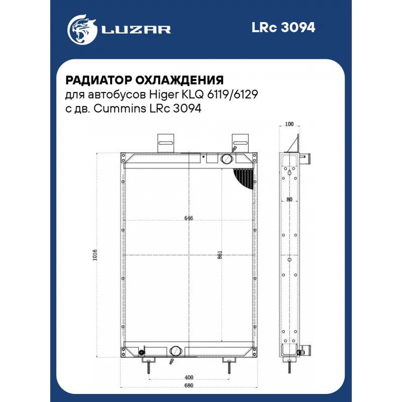 Радиатор охлаждения для автобусов Higer KLQ 6119/6129 с дв. Cummins Характеристики: Артикул: LRc 3094 OEM номера: 13E0113001A, 13E0113001YLA, 13E0113001 Трансмиссия: MT/AT Кондиционер: +/- Материал сердцевины: алюминий Материал бачков: алюминий Тип сердцевины: паяная Длина сердцевины, мм: 646 Толщина сердцевины, мм: 80 Высота сердцевины, мм: 861 Комплектация: Радиатор охлаждения - 1 шт Паспорт изделия - 1 шт Гарантия: от 1 года.