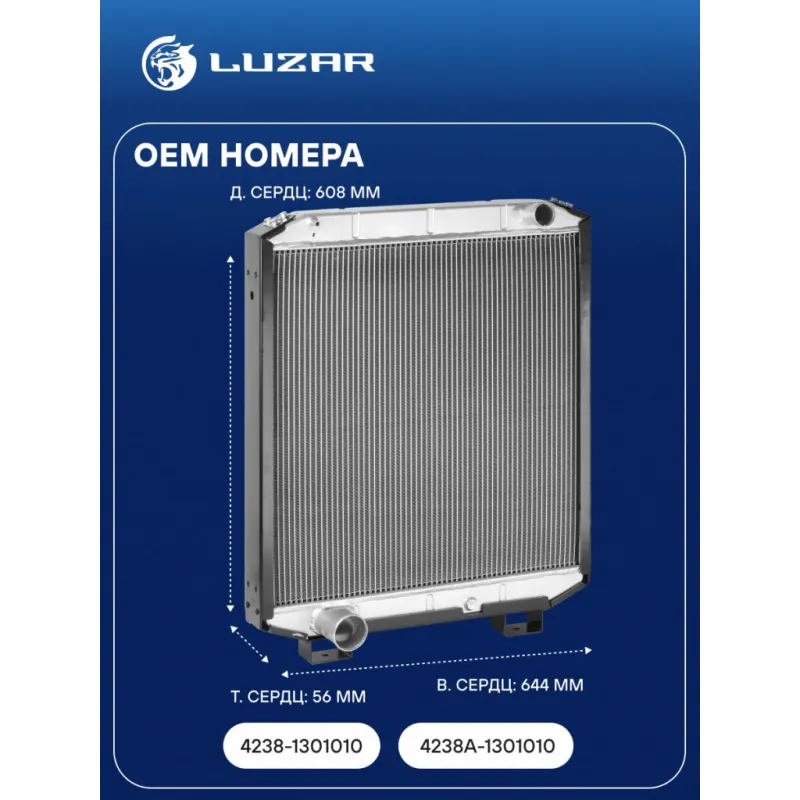 Радиатор охлаждения для автобусов КАВЗ 4238/4235 "Аврора" с дв. Cummins 6ISBe/ЯМЗ-5346/5362 Характеристики: Артикул: LRc 0307 OEM номера: 4238-1301010, 4238A-1301010, 4238А-1301010 Трансмиссия: MT Кондиционер: +/- Длина сердцевины, мм: 608 Высота сердцевины, мм: 644 Толщина сердцевины, мм: 56 Тип сердцевины: паяная, 2-х рядная М... Читать полностью →