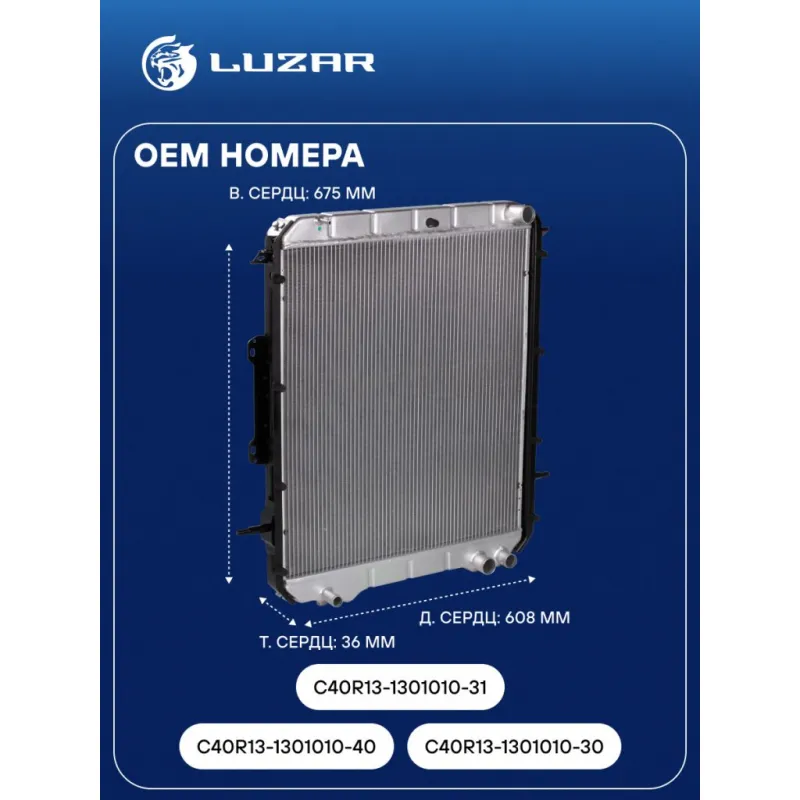 Радиатор охлаждения для автобусов ПАЗ Вектор Next Характеристики: Артикул: LRc 0301 OEM номера: C40R13-1301010-40 , C40R13-1301010-30, C40R13-1301010-31 Трансмиссия: MT Кондиционер: - Длина сердцевины, мм: 608 Высота сердцевины, мм: 675 Толщина сердцевины, мм: 36 Подходит для авто: ПАЗ 320405 «Вектор Next» Для проверки прим... Читать полностью →