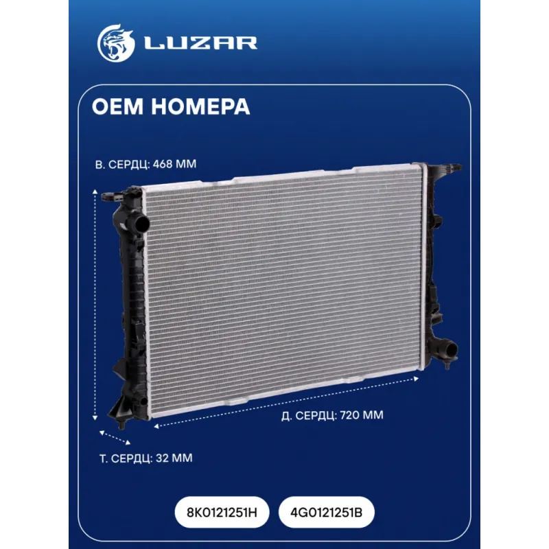 Радиатор охлаждения для автомобилей A4 (07-)/A5 (07-)/A6 (11-)/A7 (10-) 2.7D/3.0D/2.5i/2.8i/3.0i M/A Характеристики: Артикул: LRc 1804 OEM номера: 8K0121251H, 4G0121251B Сопутствующий товар: Элементы для уплотнения соединений: LGS 0024 Трансмиссия: MT/AT Кондиционер: +/- Длина сердцевины, мм: 720 Высота сердцевины, мм: 468 Толщина сердцевины, мм: 32 Сопутствующий товар: Радиаторы кондиционера (конденсеры): LRAC 18180; LRAC 1881 Сопутствующий товар: Крышки (пробки) расширительного бачка: LL 1835 Подходит для авто: Audi A4 B8 (07-), A4 B8 (07-), A5 (07-), A5 (07-), A5 (07-), A6 C7 (11-), A7 (10-), A7 (10-) Для проверки применяемости отправьте VIN автомобиля через вкладку "Есть вопросы о товаре?" Комплектация: Радиатор охлаждения Паспорт изделия Гарантия: от 1 года.