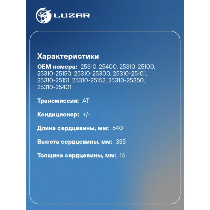 | Сопутствующий товар: Радиаторы кондиционера (конденсеры) | LRAC HUAc99160; LRAC HUAc99250 |