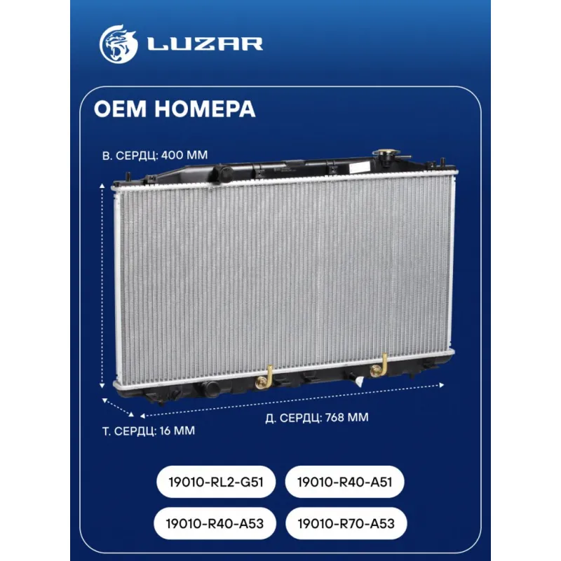 Радиатор охлаждения для автомобилей Accord (08-) 2.0i AT Характеристики: Артикул: LRc 231L2 OEM номера: 19010-RL2-G51, 19010-R40-A51, 19010-R40-A53, 19010-R70-A53 Трансмиссия: AT Кондиционер: +/- Длина сердцевины, мм: 768 Высота сердцевины, мм: 400 Толщина сердцевины, мм: 16 Сопутствующий товар: Радиаторы кондиционера (конденсеры): LRAC 23L2 Сопутствующий товар: Крышки (пробки) радиатора: LL 1902 Подходит для авто: Honda Accord (08-) Для проверки применяемости отправьте VIN автомобиля через вкладку "Есть вопросы о товаре?" Комплектация: Радиатор охлаждения Паспорт изделия Гарантия: от 1 года.