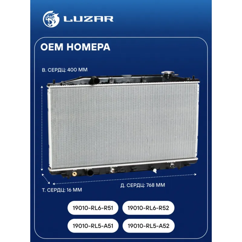 Радиатор охлаждения для автомобилей Accord (08-) 2.4i AT Характеристики: Артикул: LRc 231L5 OEM номера: 19010-RL5-A51, 19010-RL5-A52, 19010-RL6-R51, 19010-RL6-R52 Трансмиссия: AT Кондиционер: +/- Длина сердцевины, мм: 768 Высота сердцевины, мм: 400 Толщина сердцевины, мм: 16 Сопутствующий товар: Электровентиляторы охлаждения: LFK 2324 Сопутствующий товар: Радиаторы кондиционера (конденсеры): LRAC 23L2 Сопутствующий товар: Крышки (пробки) радиатора: LL 1902 Подходит для авто: Honda Accord (08-) Для проверки применяемости отправьте VIN автомобиля через вкладку "Есть вопросы о товаре?" Комплектация: Радиатор охлаждения Паспорт изделия Гарантия: от 1 года.