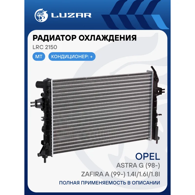 Радиатор охлаждения для автомобилей Astra G (98-)/Zafira A (99-) 1.4i/1.6i/1.8i MT Характеристики: Артикул: LRc 2150 OEM номера: 1300 214, 90570728, 93277988, 1300189, 13150403, 90570730, 9119486, 9202505, 9202506 Трансмиссия: MT Кондиционер: + Длина сердцевины, мм: 600 Высота сердцевины, мм: 378 Толщина сердцевины, мм: 23 Тип сердцевины: сборная Материал сердцевины: алюминий Материал бачков: пластик Сопутствующий товар: Радиаторы кондиционера (конденсеры): LRAC 2127; LRAC 2128 Подходит для авто: Opel Astra G (98-), Zafira A (99-) Для проверки применяемости отправьте VIN автомобиля через вкладку "Есть вопросы о товаре?" Комплектация: Радиатор охлаждения Паспорт изделия Гарантия: от 1 года.