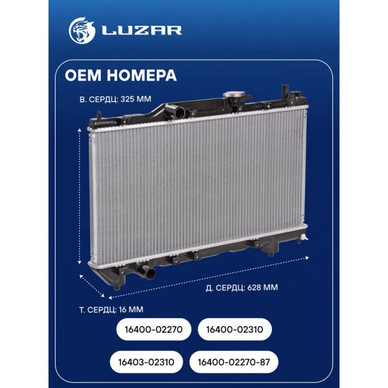 Радиатор охлаждения для автомобилей Avensis (97-)/Corona (97-) 1.6i/1.8i MT Характеристики: Артикул: LRc 1904 OEM номера: 16400-02270, 16400-02310, 16403-02310, 16400-02270-87 Трансмиссия: MT Кондиционер: +/- Длина сердцевины, мм: 628 Высота сердцевины, мм: 325 Толщина сердцевины, мм: 16 Сопутствующий товар: Крышки (пробки) радиатора: LL 1903 Подходит для авто: Toyota Avensis (97-), Corona X T210 (96-) Для проверки применяемости отправьте VIN автомобиля через вкладку "Есть вопросы о товаре?" Комплектация: Радиатор охлаждения Паспорт изделия Гарантия: от 1 года.
