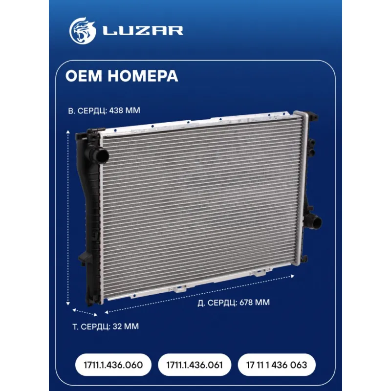 Радиатор охлаждения для автомобилей BMW 5 (E39) (95-) G M/A Характеристики: Артикул: LRc 26108 OEM номера: 1711.1.436.060, 1711.1.436.061, 17 11 1 436 063 Сопутствующий товар: Элементы для уплотнения соединений: LGS 0024 Трансмиссия: MT/AT Кондиционер: +/- Длина сердцевины, мм: 678 Высота сердцевины, мм: 438 Толщина сердцевины, мм: 32 Подходит для авто: BMW 5 E39 (95-), 7 E38 (94-) Для проверки применяемости отправьте VIN автомобиля через вкладку "Есть вопросы о товаре?" Комплектация: Радиатор охлаждения Паспорт изделия Гарантия: от 1 года.