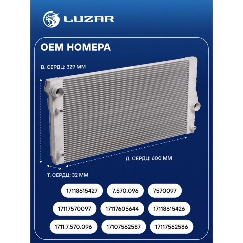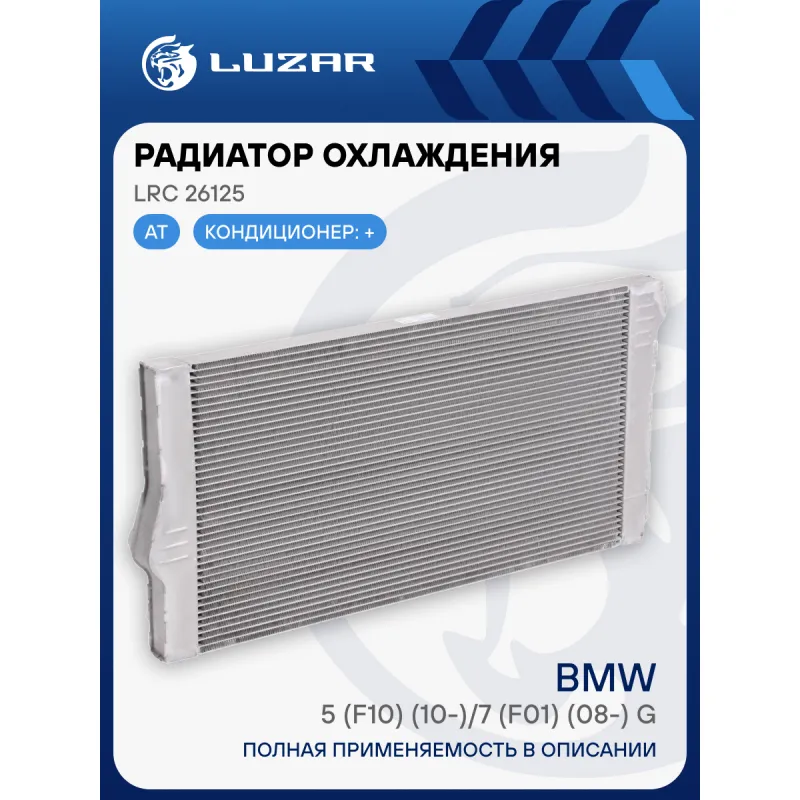 Радиатор охлаждения для автомобилей BMW 5 (F10) (10-)/7 (F01) (08-) G M/A Характеристики: Артикул: LRc 26125 OEM номера: 1711.7.570.096, 17107562587, 17117562586, 17117570097, 17117605644, 17118615426, 17118615427, 7.570.096, 7570097, 7562586, 7562587, 7570099, 17118615454 Трансмиссия: AT Кондиционер: + Длина сердцевины, мм: 600 Высота сердцевины, мм: 329 Толщина сердцевины, мм: 32 Сопутствующий товар: Электровентиляторы охлаждения: LFK 2620 Сопутствующий товар: Радиаторы кондиционера (конденсеры): LRAC 2605 Подходит для авто: BMW 7 F01/F02 (08-), 5 F10/F11/F07 (10-), 6 F12/F13/F06 (11-) Для проверки применяемости отправьте VIN автомобиля через вкладку "Есть вопросы о товаре?" Комплектация: Радиатор охлаждения Паспорт изделия Гарантия: от 1 года.