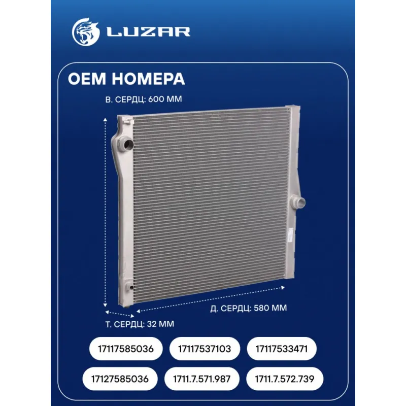 Радиатор охлаждения для автомобилей BMW X5 E70 (07-) 3.0i/4.8i Характеристики: Артикул: LRc 26193 OEM номера: 17117585036, 17117537103, 17117533471, 17127585036, 1711.7.571.987, 1711.7.572.739 Сопутствующий товар: Элементы для уплотнения соединений: LGS 0024 Трансмиссия: AT Кондиционер: + Длина сердцевины, мм: 580 Высота сердцевины, мм: 600 Толщина сердцевины, мм: 32 Сопутствующий товар: Электровентиляторы охлаждения: LFK 26193 Сопутствующий товар: Радиаторы кондиционера (конденсеры): LRAC 26193 Подходит для авто: BMW X5 E70 (07-), X5 E70 (07-) Для проверки применяемости отправьте VIN автомобиля через вкладку "Есть вопросы о товаре?" Комплектация: Радиатор охлаждения Паспорт изделия Гарантия: от 1 года.